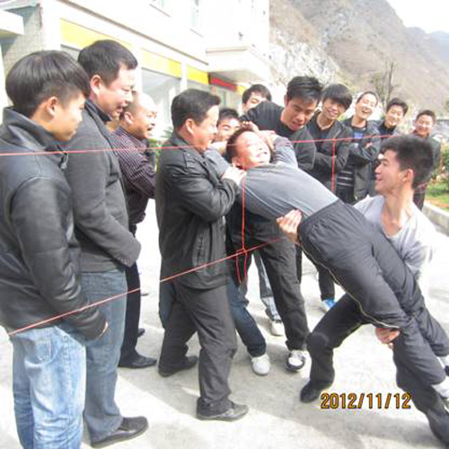 “生死電網(wǎng)”素質(zhì)拓展活動現(xiàn)場,大家鼎力協(xié)作