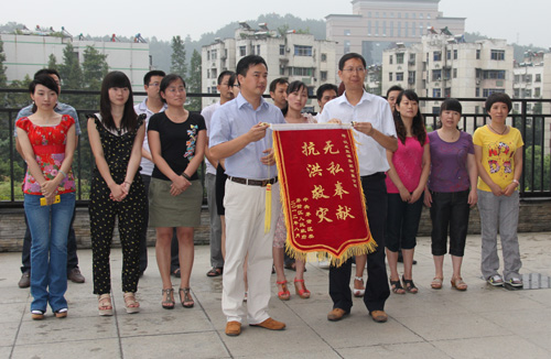茅箭區(qū)陳武副區(qū)長(前排右一)為集團(tuán)頒發(fā)錦旗