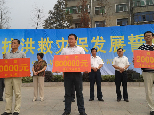 在2012年8月10日十堰市茅箭區(qū)召開的抗洪救災(zāi)保發(fā)展誓師大會上,漢成能源集團(tuán)副董事長劉剛代表集團(tuán)向十堰市茅箭區(qū)移交了所捐贈的40萬元現(xiàn)金以及價值40萬元的建材、生活物資。同日,副總裁胡凱豐代表集團(tuán)向十堰經(jīng)濟(jì)開發(fā)區(qū)移交了所捐贈的10萬元現(xiàn)金以及價值10萬元的生活物資。至此,集團(tuán)累計向十堰災(zāi)區(qū)捐款捐物價值100萬元。