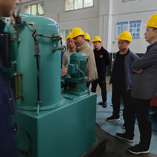 培訓(xùn)的第一站由白果坪電站值班長孫友山講解弧門液壓系統(tǒng),他準備充分、語言樸實、實操經(jīng)驗豐富,聽課人員對疑惑點一一向他請教或是大家展開討論,雷總聽到大家討論正酣,也積極參與進來為不懂的人員講解星三角形降壓啟動的原理,言簡意賅、通俗易懂。