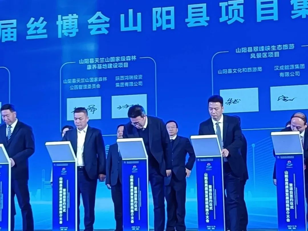 據(jù)悉,本屆絲博會山陽縣共簽約43個項目,總投資208.37億元。其中,漢成能源集團與山陽縣人民政府成功簽約翠峰峽旅游風(fēng)景區(qū)投資開發(fā)項目。